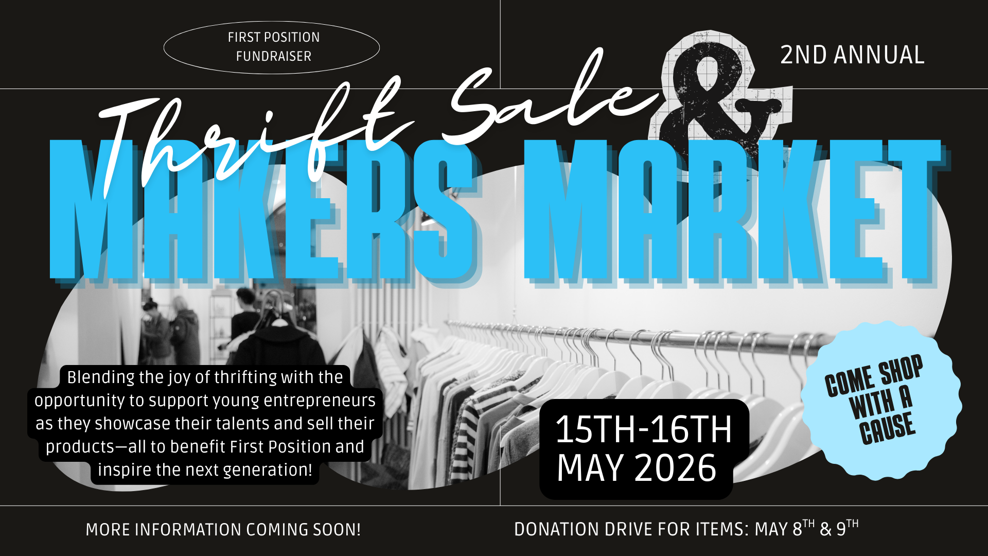Join us for an exciting weekend of community, creativity, and support at the Makers Market & Thrift Sale π, happening May 15th and 16th! This special event is not only a chance to find unique treasures and products, but also a fundraiser for First Position, a local ministry dedicated to empowering youth and the next generation through dance and discipleship. π